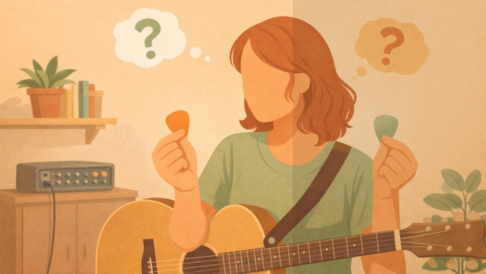 Do you prefer a thin, flexible pick for feel and flow, or a thick, stiff one for control and attack?
